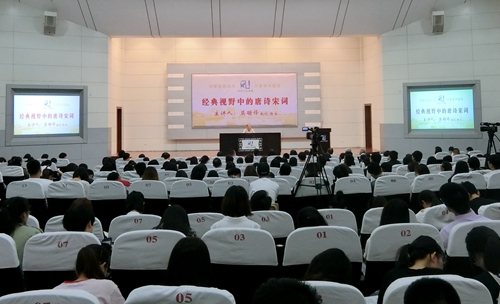5月10日晚,南京大学人文社科资深教授、央视百家讲坛著名主讲人莫砺锋教授做客风则江大讲堂作题为《经典视野中的唐诗宋词》的讲座。来听讲座的听众,把可以容纳400多人的铁城科教馆挤得满满当当。除了学生,还有不少文学爱好者。