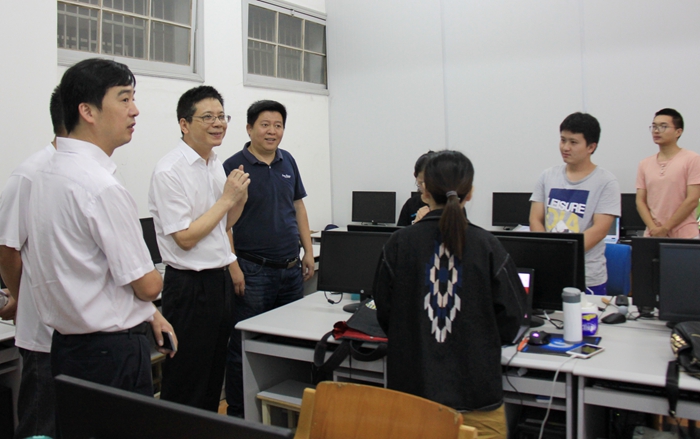 王建力一行还来到化学化工学院、机械与电气工程学院、土木工程学院、纺织服装学院教师工作室,慰问了暑假期间仍留在实验室埋头攻关课题的教师代表。王建力与教师们一一握手,赞许他们放弃暑假休息时间致力学术研究的钻研精神,希望他们依托科研项目进一步提高自身学术水平,加强团队合作,凝练学术方向,促进学科建设发展,为学校提升科研实力作出新的更大的贡献。