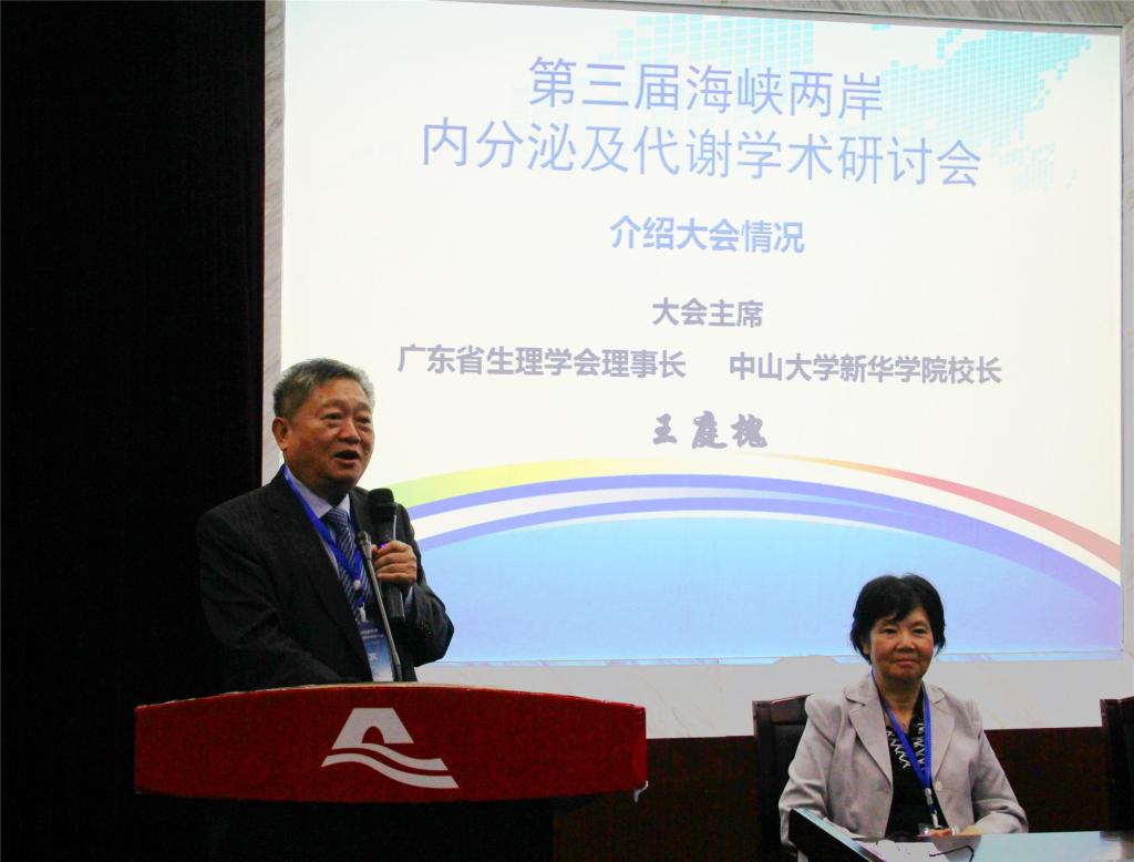 10月20日,由中山大学新华学院、广东省生理学会、台湾内分泌及代谢学会联合主办,我校医学院、附属医院联合承办的第三届海峡两岸内分泌及代谢学术研讨会在我校医学院财贞楼二楼报告厅召开。我校副校长寿永明,广东省生理学会理事长、中山大学新华学院校长、中山大学中山医学院教授王庭槐,台湾成功大学教授游一龙,校党委委员、医学院党委书记柳国庆,中山大学新华学院党委书记周云出席会议,来自海峡两岸内分泌及代谢研究领域的专家学者50余人,我校医学院师生和附属医院医生参加了会议。