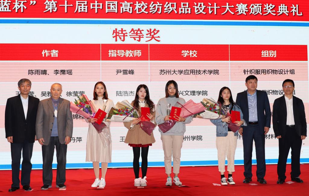 11月10-11日,我校承办的“红绿蓝杯”第十届中国高校纺织品设计大赛颁奖典礼和庆祝晚会在柯桥经济开发区曹娥江游艇假日酒店隆重举行。我校纺织工程专业学生的两项作品《绿影》《含珠格》分别获得机织服用织物设计组和家纺装饰用织物设计组特等奖,另外我校还获得一等奖10项,二、三等奖25项,段亚峰、陆浩杰等七位教师获得优秀指导教师称号,我校还获得大赛突出贡献奖和最佳组织单位奖。中国科学院蒋士成院士、教育部普通高等学校纺织类教学指导委员会上任主任委员丁辛、浙江理工大学原副校长陈建勇、我校副校长寿永明等出席颁奖典礼。