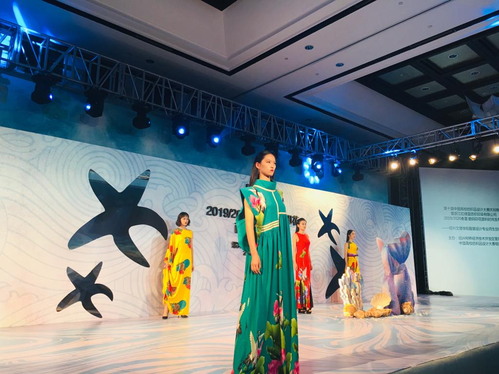 颁奖典礼期间,学校还同步举办了第三届全国纺织品与创意设计教学研讨会、大赛十年庆典晚会等活动,组委会依托绍兴柯桥“蓝印时尚小镇”,奉献了一场由我校纺织服装学院和艺术学院师生共同推出的“红绿蓝数码印花面料”时尚发布秀和文艺表演晚会。
