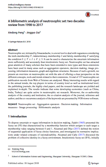 “中智理论”是叶军研究的重心。这个最早由美国著名教授萨马兰特奇(Smarandache)提出的词——neutrosophy(中智),当时并未引起学界的关注,主要原因是基于中智哲学理论的研究,难以用于科学与工程领域。2013年,叶军首次提出“中智关联系数与决策方法”,在《International Journal of General Systems》上发表了第一篇中智理论论文。由于是原创性理论,很难得到学界认可,这篇论文是在历经两年多的反复碰壁后,才终于面世。“扎德(Zadeh)教授于1965年创立模糊理论的时候,也受到过很多批评,但现在模糊理论已经成为一个比较成熟的理论。”叶军认为,科研工作要有所突破,就是要坚持、自信。
