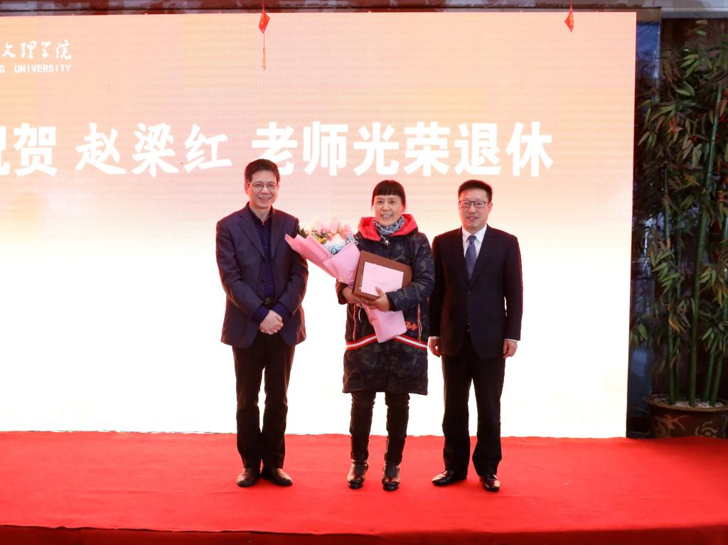 1月19日上午,学校在河西餐厅对竹楼举行2018年度首届退休教职工荣休仪式,为42位退休教职工举办集体荣休。校党委书记汪俊昌,校长王建力,党委副书记沈赤、郝敬习,副校长张宏及有关职能部门负责人参加了活动。汪俊昌在荣休仪式上讲话,沈赤主持荣休仪式。
