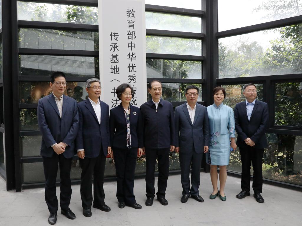四月的兰亭,天朗气清,惠风和畅。4月16日上午,“教育部全国普通高校中华优秀传统文化(书法)传承基地”揭牌仪式在我校兰亭书法艺术学院举行。十二届全国政协副主席、九三学社中央原主席、中国科协名誉主席、中科院院士、北京大学韩启德教授,北京大学燕京学堂院长袁明教授,北京大学人文社会科学研究院常务副院长、博士生导师渠敬东教授,九三学社浙江省委会秘书长过维雅,绍兴市政协副主席冯建荣,我校党委书记汪俊昌、校长王建力、党委副书记郝敬习等出席揭牌仪式。韩启德为基地揭牌。汪俊昌主持揭牌仪式。
