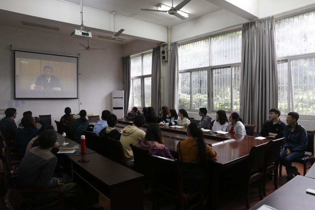 4月30日上午,纪念五四运动100周年大会在人民大会堂举行,习近平总书记出席大会并发表重要讲话。我校高度重视本次纪念大会的收看收听组织工作。校党委书记汪俊昌在4月28日的党委会上强调,要根据中央部署要求,把五四精神融入各项工作中。校党委副书记郝敬习强调要认真学习、充分领会习近平总书记重要讲话精神,在今后的学习、工作、生活中坚持践行、不断提升。校团委、各二级学院积极组织团学骨干、团员青年通过电视、互联网、手机客户端等方式,集中收看大会盛况,第一时间学习习近平总书记重要讲话精神。