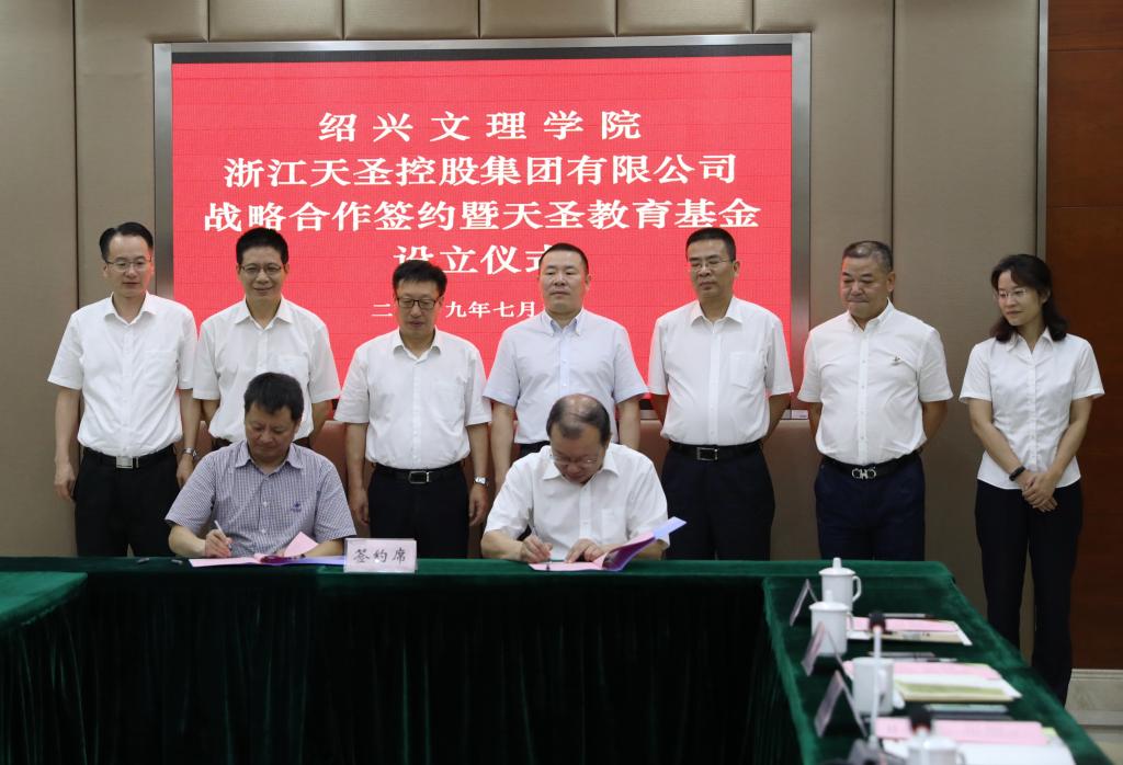 据悉,浙江天圣控股集团有限公司在2007年与我校纺织服装学院开展合作,设立了天圣奖助学金。今年,天圣控股集团有限公司与我校签订战略合作协议,并在我校设置2000万元留本基金,用于支持学校更名设置绍兴大学工作。