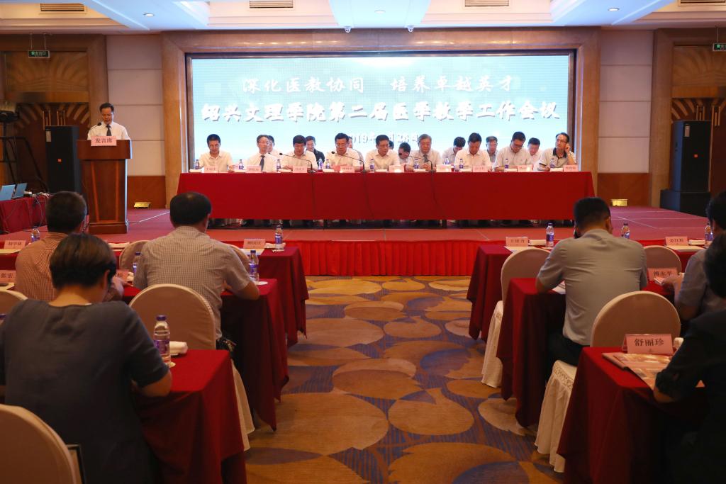 马成永从立德树人更高标准培养医学人才、把握时代性提升医学教育服务地方的能力、协同创新与国际融合全面推进绍兴医学教育事业发展三方面提出要求。金红柱从医卫系统要高度重视医教协同、附属医院要借助资源进行医教协同管理、抓好医学生的实践能力和教学质量三个方面提出要求。