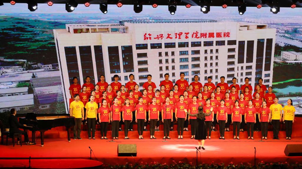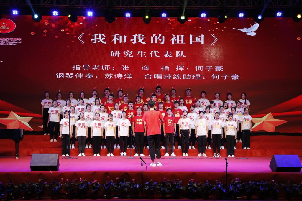 附属医院《大中国》和研究生代表队《我和我的祖国》深情诉说着对祖国母亲的衷心依恋和真诚歌颂,感染了现场的每一位观众。