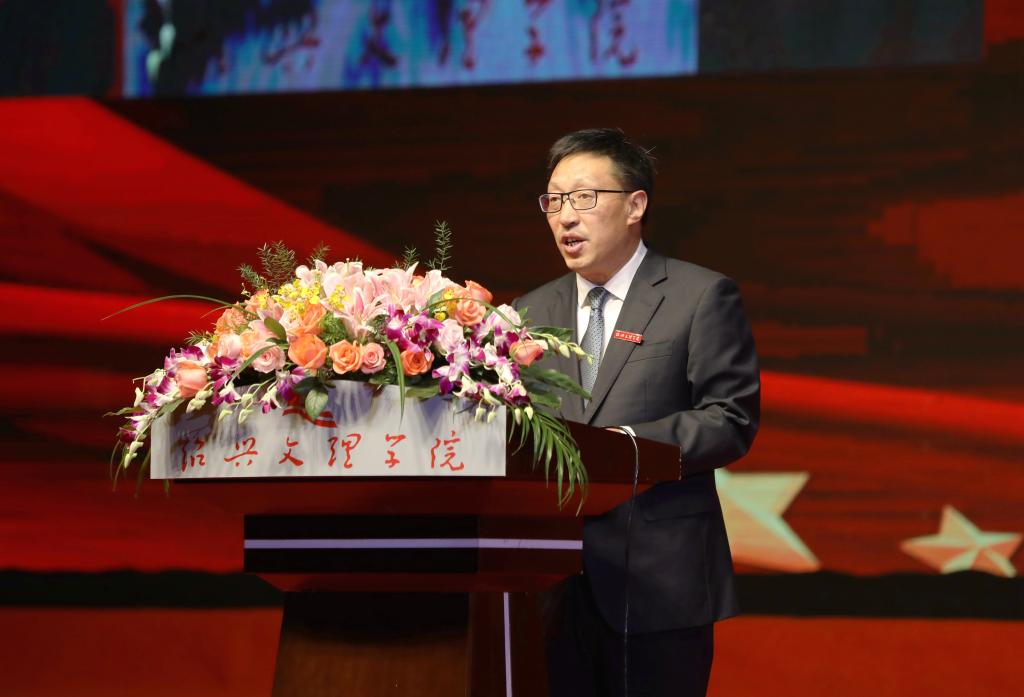 校党委书记汪俊昌代表学校党委、行政对大会的召开表示热烈的祝贺。他在致辞中和大家一起重温了新中国70年艰难困苦玉汝于成的光辉历程,重温了中国共产党“为中国人民谋幸福,为中华民族谋复兴”的初心和使命,重温了学校筚路蓝缕传薪兴学的历史和责任。他指出,我们的祖国和人民走进了新时代,“幸福都是奋斗出来的”“我们都是追梦人”,这是我们向着“两个一百年”奋斗目标迈进最有力的动员令,也是我们向着实现中华民族伟大复兴的中国梦迈进最有力的动员令;我们的学校和师生也站在了关键节点,正处于学校更名设置大学的决胜时刻,更名绍兴大学的使命落在我们这一代人身上,必须全校一盘棋,上下一起抓,用最佳的精神状态、最扎实的材料数据、最周到细致的工作落实,来迎接教育部专家组进校。