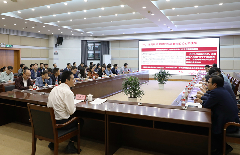 10月17日上午,校长王建力以《不忘办人民满意教育初心,牢记建设高水平应用型大学使命》为题,在图书馆报告厅上了一堂“不忘初心、牢记使命”主题教育专题党课。各二级学院院长、教学副院长,专业(系)主任、党员师生代表、机关第一党支部全体成员参加党课。党课由党校办负责人主持。