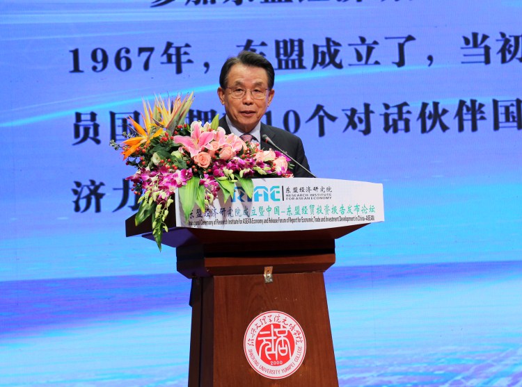 韩升洙致辞,他简要介绍了东盟基本情况和发展前景,希望东盟经济研究院乘势而立,在绍兴启航,深入研究东盟经济各领域以及与中国和其他国家之间的关系,对东盟与其他地区和国家的合作开展平行研究,为推动共建“一带一路”倡议发挥巨大贡献。