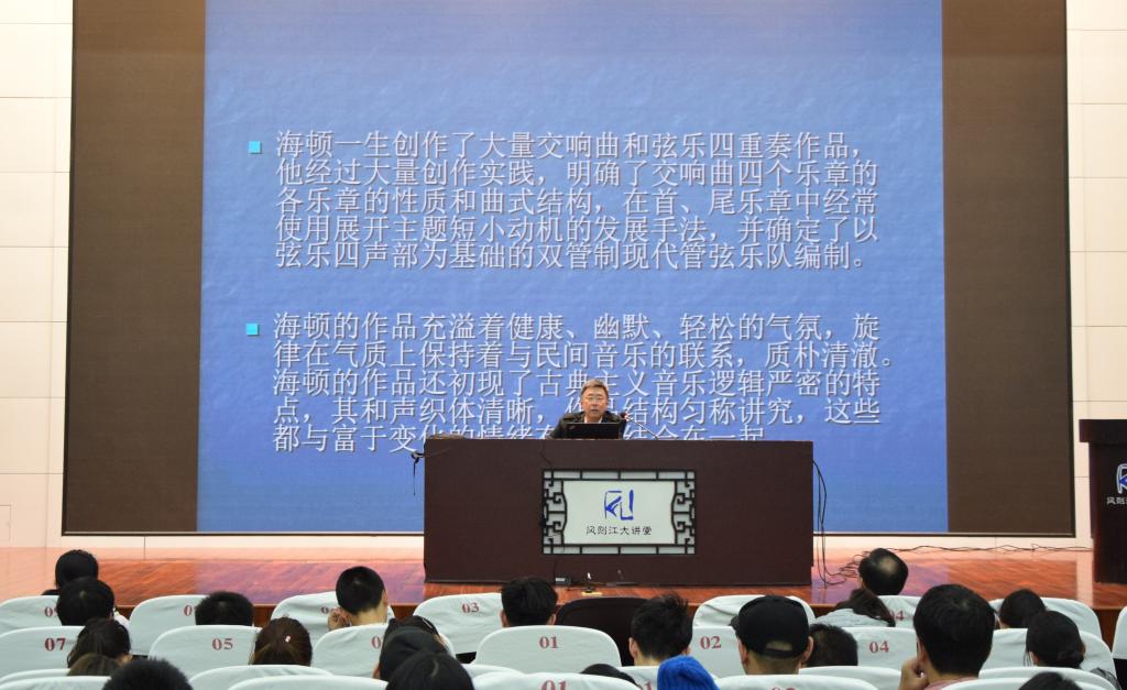 11月1日晚,华南理工大学二级教授、博士生导师何平做客风则江大讲堂,畅谈“一带一路视域下中国与欧洲音乐文化的交流与互鉴”。校党委委员、组织部部长宣绍龙主持讲座。艺术学院相关负责人、师生代表现场聆听讲座。