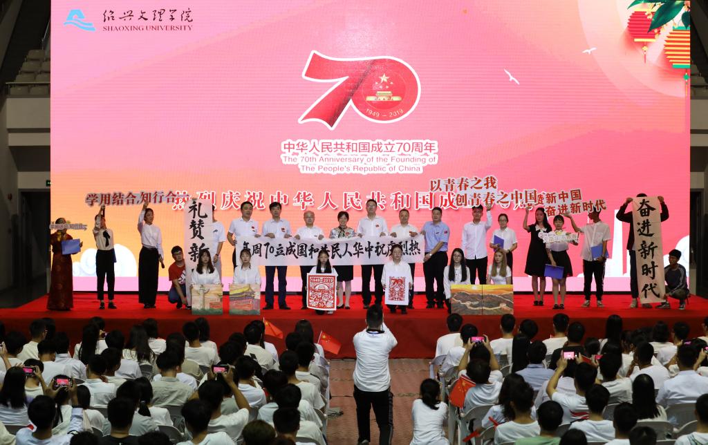 9月29日晚上,学校在体育馆举行庆祝中华人民共和国成立70周年大会暨“礼赞新中国、奋进新时代”大合唱比赛,来自各学院15支参赛队伍和4支表演队伍的师生深情放歌,讴歌新中国70年波澜壮阔的伟大历程,抒发爱党爱国爱校的炽热情怀,充分展现了与祖国共奋进的爱国情和报国志。9月30日上午,学校组织全校400余名团员青年在河东操场举行升旗仪式,庆祝新中国成立70周年,师生一起高唱国歌,向国旗行注目礼,表示要让蓬勃青春与家国命运同频共振,做一名奋斗者和追梦人。
