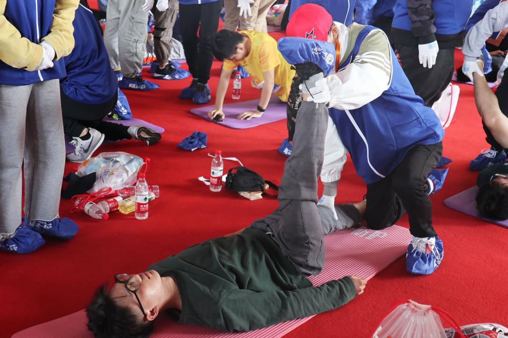 此外,我校1059名志愿者积极投身此项大型赛事的志愿服务工作。其中67名主会场志愿者,351名赛后拉伸志愿者,62名医疗喷雾志愿者,579名赛道观察志愿者。10日凌晨2点30分,志愿者们开始陆陆续续从宿舍赶往集合点;3点10分,人员集结完毕,车辆准时出发。夜色深重的文理,寂静清冷的凌晨因一位位文理志愿者的集合而变得生动鲜活,他们用辛勤的劳动为来自世界各地的选手们提供了热情的服务。