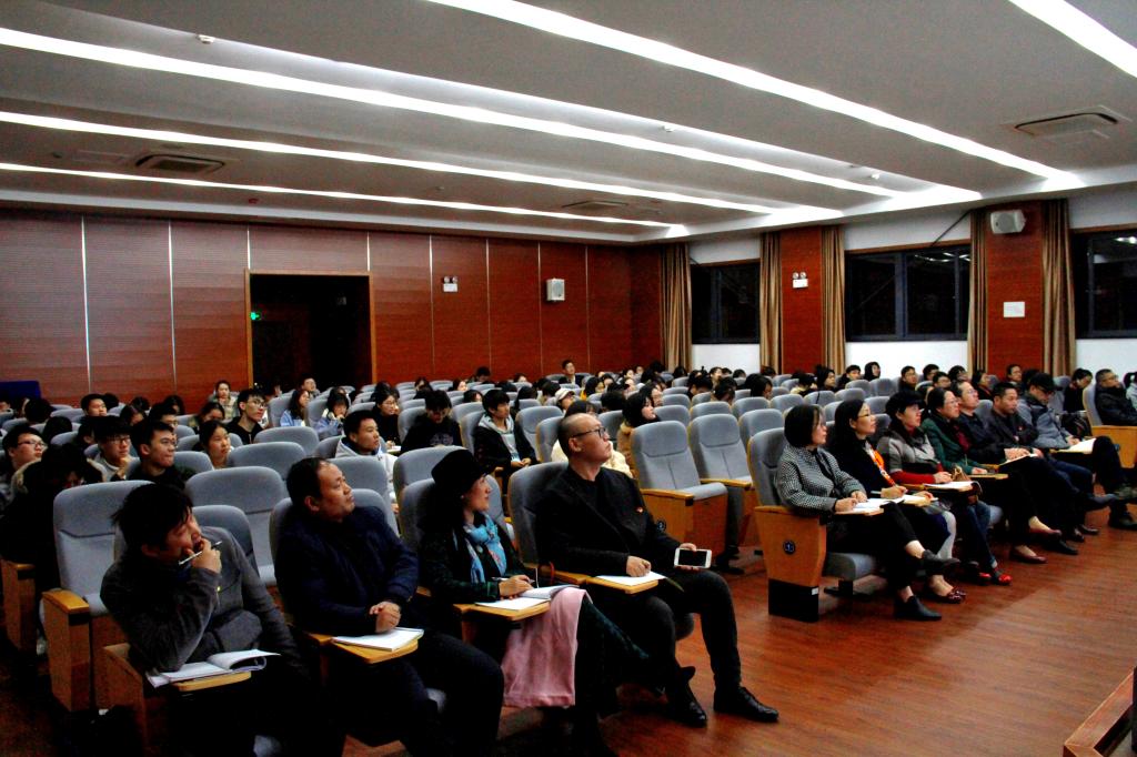 11月26日晚,原内蒙古科技大学马克思主义学院副院长、教授、硕士生导师,现我校马克思主义学院教授班瑞钧做客“时政大课堂”,作题为《大国的制与治——十九届四中全会精神导学》专题讲座。马克思主义学院、化学化工学院、机械与电气工程学院、土木工程学院、纺织服装学院、艺术学院的党员师生150余人聆听了讲座。
