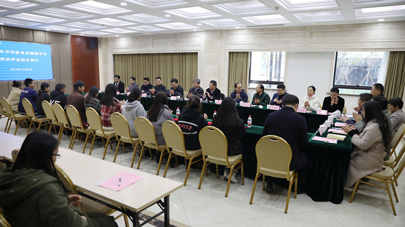 仪式由党委学工部部长宋浩成主持。会上,校对外联络处处长毛宇锋宣读第一届和第二届开明教育西藏籍学生奖助学金表彰决定,洛松卓玛等30多位西藏籍学生获得奖励。吴勤波为奖助学金获得者颁发证书。