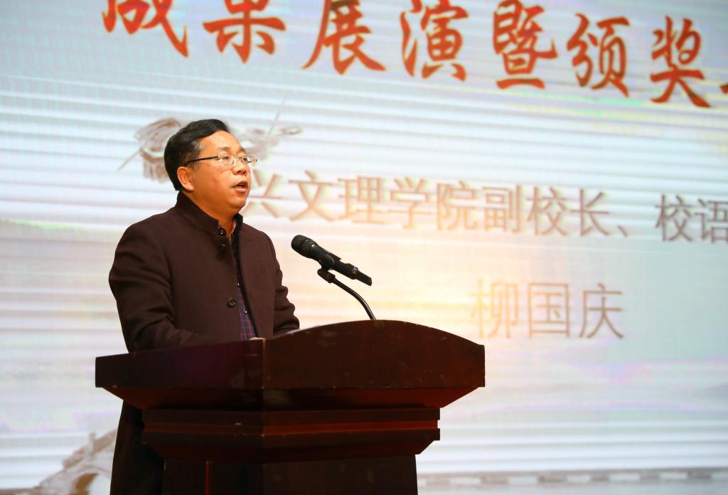 柳国庆代表学校对本次活动的举行表示热烈地祝贺,对领导和嘉宾的到来表示欢迎。他指出,诵读经典诗文、传承和弘扬中国优秀传统文化是高校立德树人的重点工作。他强调,竞赛成果展示暨颁奖典礼既是一次成果的检阅、研讨与展示,更是对未来的展望和期许。他回顾了我校中华经典诵读相关工作成果,相信在教育厅正确指导下,在全省高校的共同努力下,中华经典诵读竞赛会越办越远。