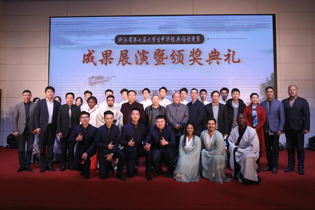 据悉,浙江省大学生中华经典诵读竞赛是由浙江省大学生科技竞赛委员会和浙江省语言文字工作委员会共同举办的A类学科竞赛,是面向浙江省普通全日制高校在校大学生的群众性科技活动,举办比赛的目的在于在全省高校弘扬中华优秀传统文化,培育和践行社会主义核心价值观,提升大学生的汉语口语表达能力,引领大学生阅读中华经典诗文,提高大学生的语言文学素养,规范大学生对国家通用语言的运用。今年的大赛,在过往基础上增加了集体组与留学生组的竞赛,亮点频频。