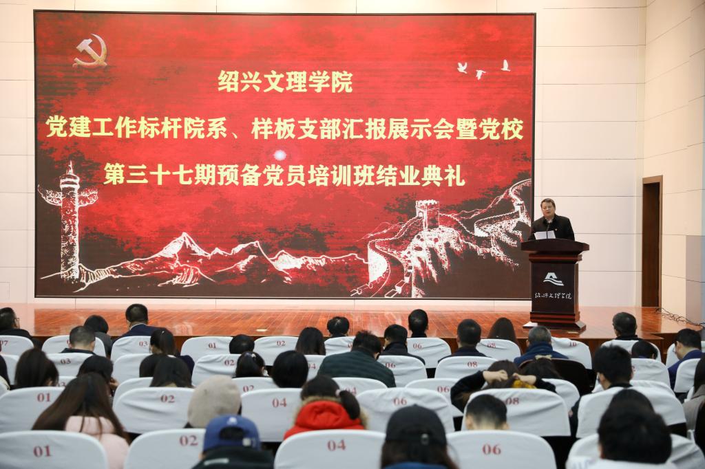 12月10日下午,学校在铁城科教馆举行党建工作标杆院系、样板支部汇报展示会暨党委党校第37期预备党员培训班结业典礼。全体二级党组织书记、组织员,部分党校校务委员会委员,党支部书记代表参加了会议。校党委副书记、党委党校校长沈赤,校党委委员、组织部部长、党委党校常务副校长宣绍龙,校党委委员、宣传部部长、党委党校副校长陈均土出席会议。会议由宣绍龙主持。