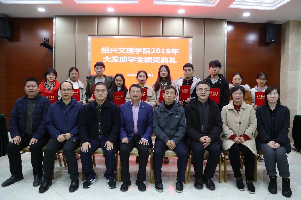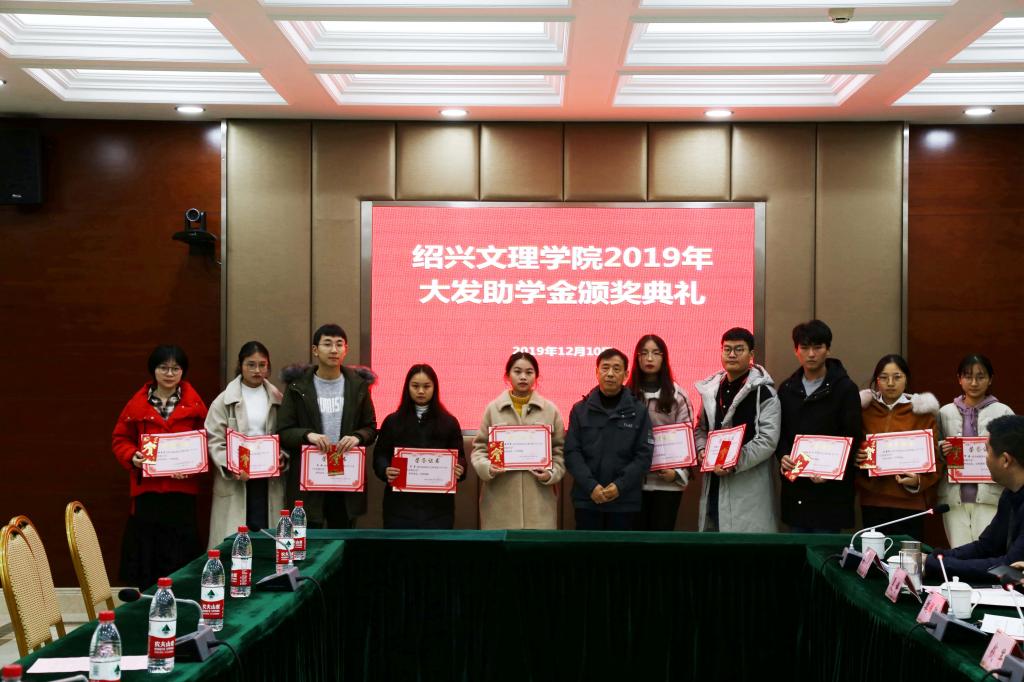 12月10日上午,2019年“大发助学金”颁奖典礼在铁城科教馆一楼会议室举行。校党委副书记沈赤,宁波大发化纤有限公司副总经理钱军,学工部、对外联络处、化学化工学院负责人和获得2019年“大发助学金”的全体学生参加颁奖典礼。