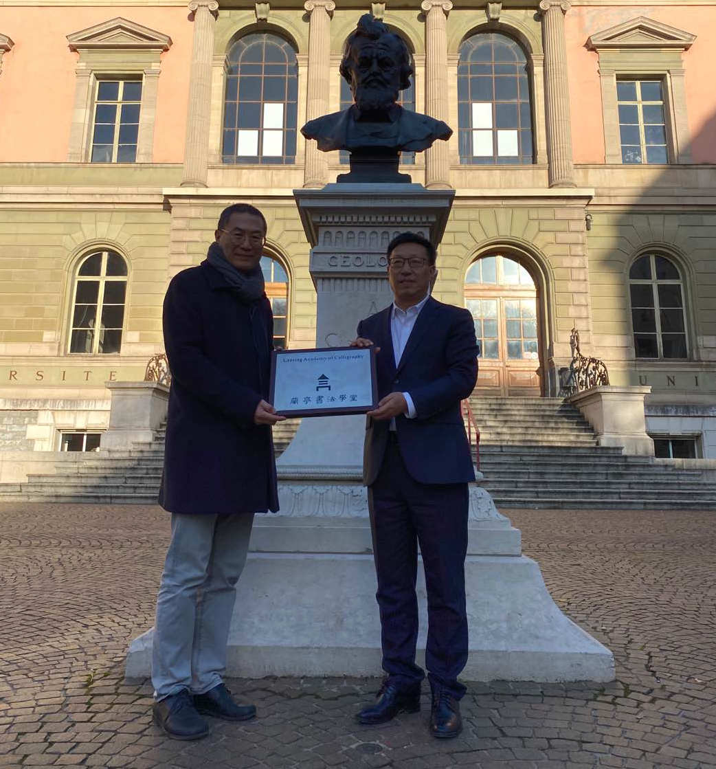 汪俊昌书记为设立在日内瓦大学的“兰亭书法学堂”授牌,并代表学校邀请瑞士日内瓦大学的汉语言专家学者参加2020年在我校兰亭书法艺术学院举办的“第十二届汉字书法教育国际研讨会”。