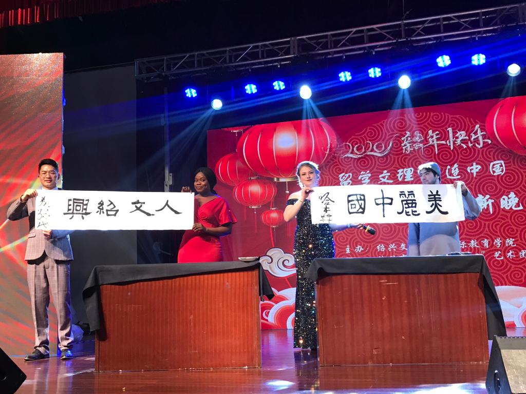 12月30日,“留学文理 心连中国”国际学生新年晚会在我校月明音乐楼举行。本次晚会由国际教育学院与绍兴市文联共同举办,绍兴市文联心连心艺术团、绍兴市戏剧家协会秘书长施律民,校学工部、研究生处、国际教育学院负责人参加活动,与全体国际学生共迎新年、同贺新春。