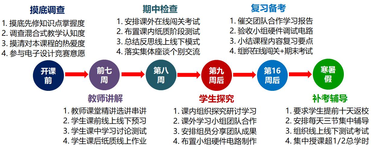 2.课程学期设计。摸底调查、教师讲解、期中检查、学生探究、复习备考和补考辅导等组成。