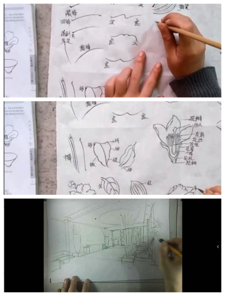 二阶段是“直播示范和探讨”的深度学习。通过教师的直播示范使同学更深入的了解课程内容的深刻含义,并跟随教师的示范进行深入的艺术与设计探讨,如刘磊老师的直播手绘效果图技法,使同学加强了对阶段一学习成果的运用并完成相应的课程作业。