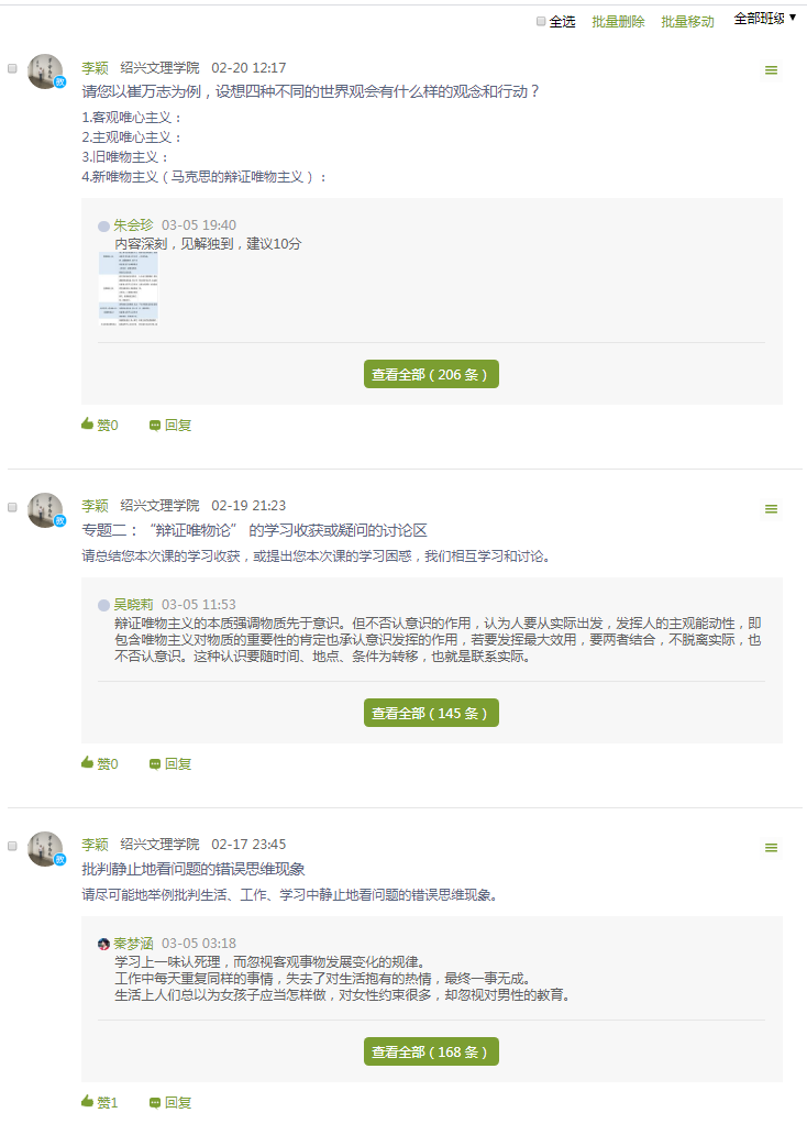 第二次课线上学习设计的四次讨论及发帖情况(这里截取的是其中的三次)