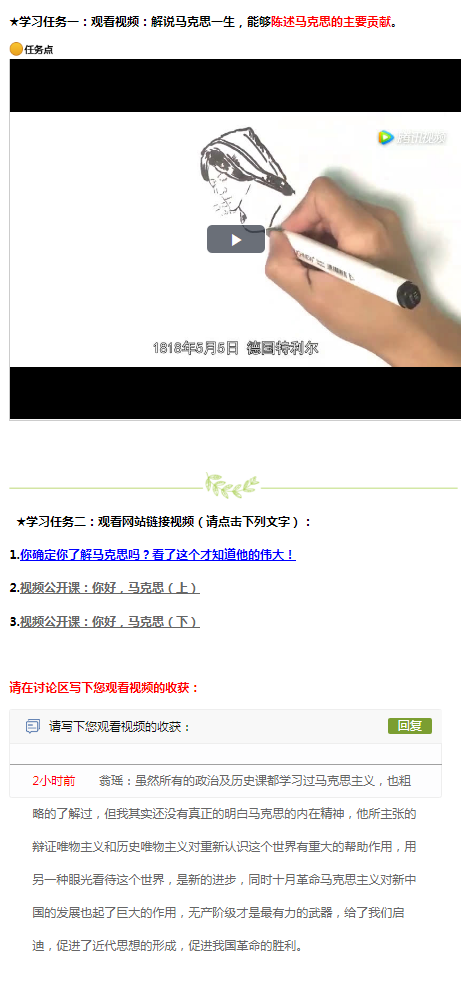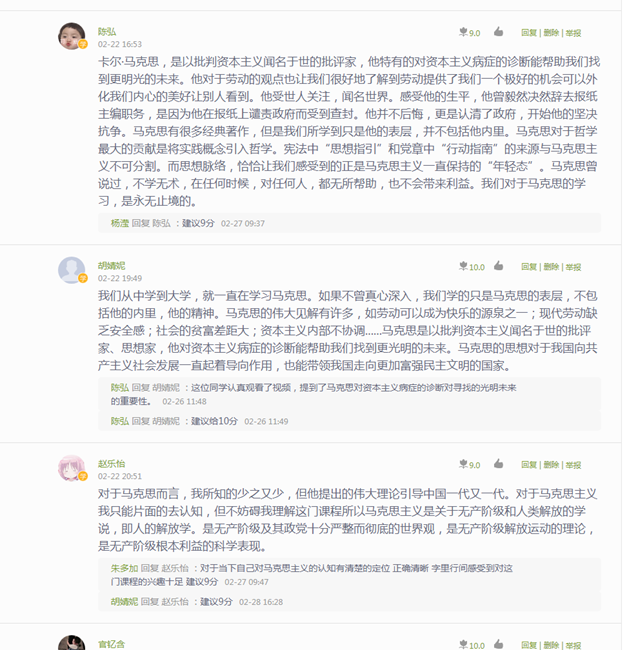 第一次课后学生拍摄的介绍马克思主义的2分钟左右的小视频截屏