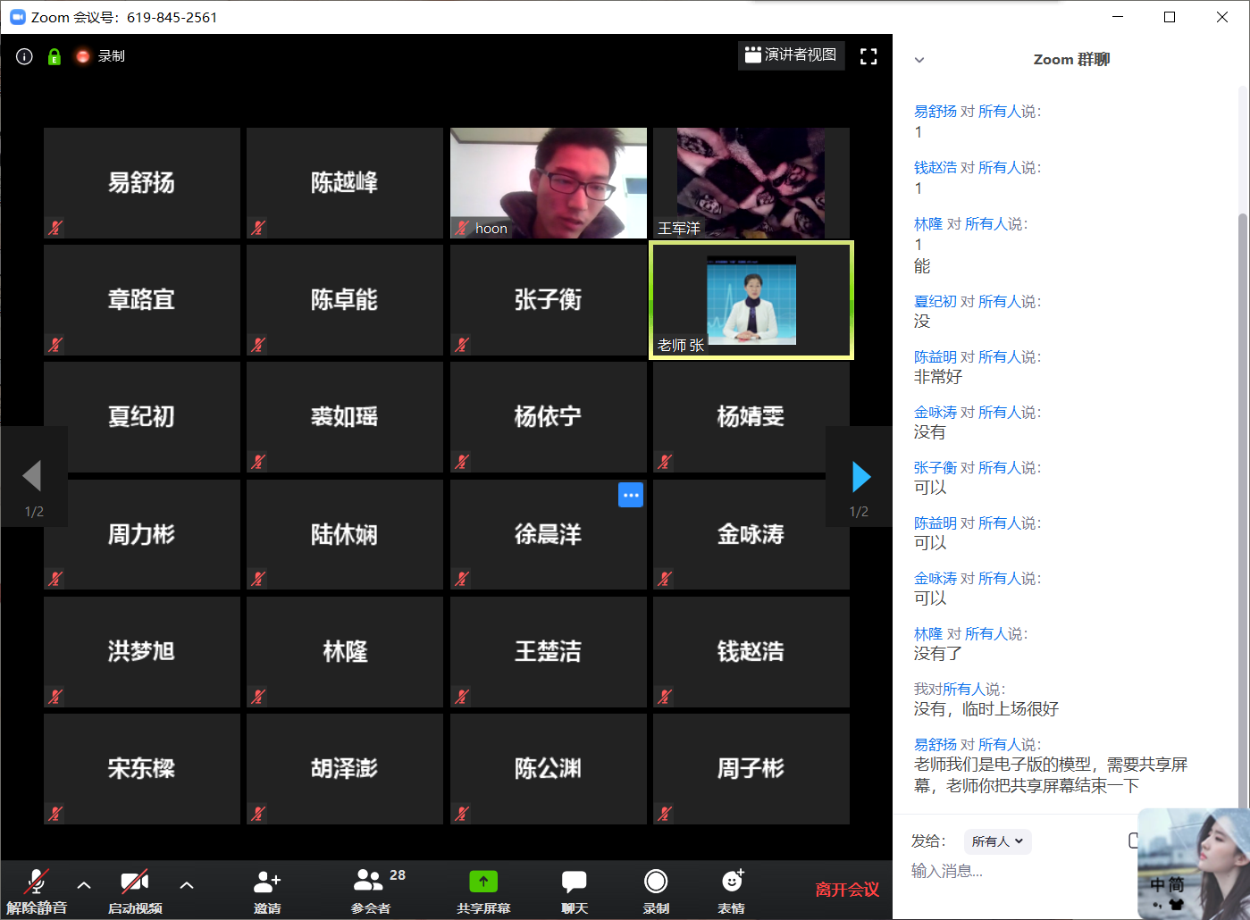 3.双平台协同是实施线上翻转课堂的优质条件 学生在超星学习通完成微课、非视频资源的自主学习,教师采用以问题为基础,任务为驱动的教学模式,通过ZOOM视频会议与学生在线进行翻转教学。通过屏幕分享,老师组织学生进行线上主题讨论、主题汇报、课程答疑、项目汇报、作业汇报、难点回顾等教学活动,通过分组任务、选人、抢答、评分、投票等功能在线进行课堂互动。利用互联网平台,打通教学与实践,建立“多空间”教学模式。