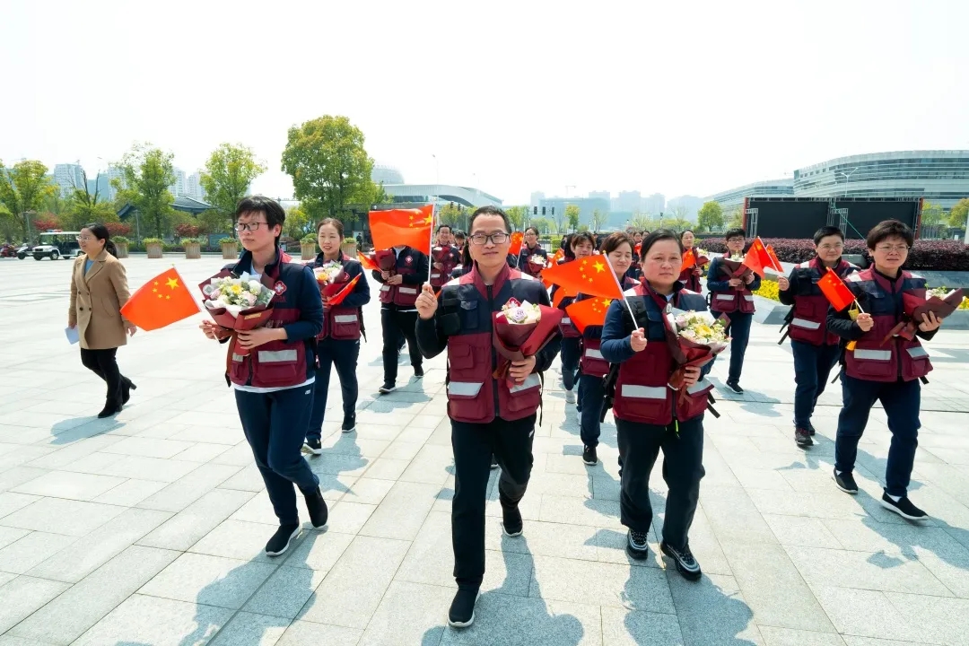 春风作伴英雄归。4月12日上午11点30分,绍兴第三批援鄂医疗队的44名医务人员平安归来,回到家乡绍兴,其中包括我校附属医院第二批10位援鄂医疗队员。为了迎接英雄凯旋,绍兴市举行了隆重的欢迎仪式。市领导陈澄、丁晓燕、顾涛、胡少云和市卫生健康委班子成员等参加。