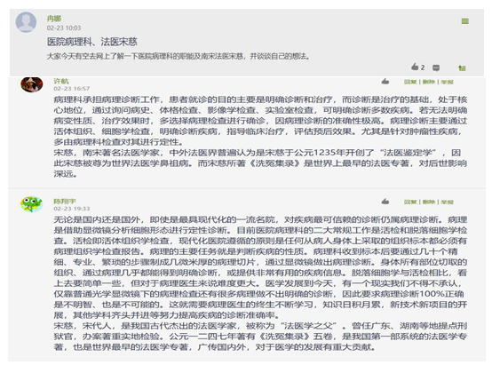 6.课程思政。在特殊时期线上教学过程中也要渗透思政元素,如在开课前让学去了解南宋法医宋慈和他的《洗冤集录》,了解我们中国对世界医学发展做出的贡献,增强民族自信心;在第一章内容学习完之后,让学生对2009十大感动中国人物之割肝救子的暴走妈妈陈玉蓉的事迹展开讨论,学生除了能在此案例中强化专业知识外,也能意识到母爱的伟大及面对困难时坚毅不拔的精神。