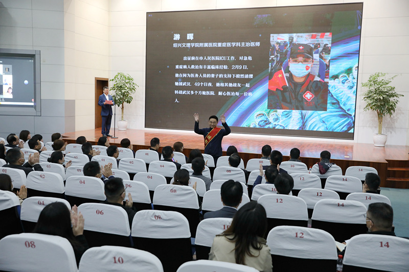 冬去春来,英雄凯旋,4月22日下午,学校在铁城科教馆举行援鄂英雄事迹报告会,表彰我校附属医院13位援鄂医务工作者。校党政领导班子成员、各二级党组织书记和党支部书记代表参加会议,校党委书记汪俊昌讲话,校党委副书记沈赤主持会议。