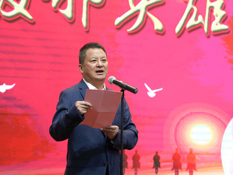 沈赤郑重宣读每一位英雄的姓名,逆行的每一位英雄都被我们铭记在心。凝聚文理人深深感谢的鲜花由学校领导一一送出。