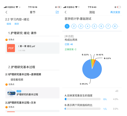 3.在线上教授方面,认真做好每堂课的教学设计是开展教学工作的重要保证。本课程采用一致性建构原则构建学习目标、学习活动和学习测评。每次课的相应学习目标均在学习通进行呈现,使学生明确学习任务;每次课前进行课堂学习流程预告与学习清单公布,使学生清晰学习过程;每堂课后进行反思报告或思维导图等主观作业提交及互评,保证学生学习效果;围绕课程学习始终向学生渗透科研严谨求实、团结合作、科学创新的精神及对待患者仁爱精神。