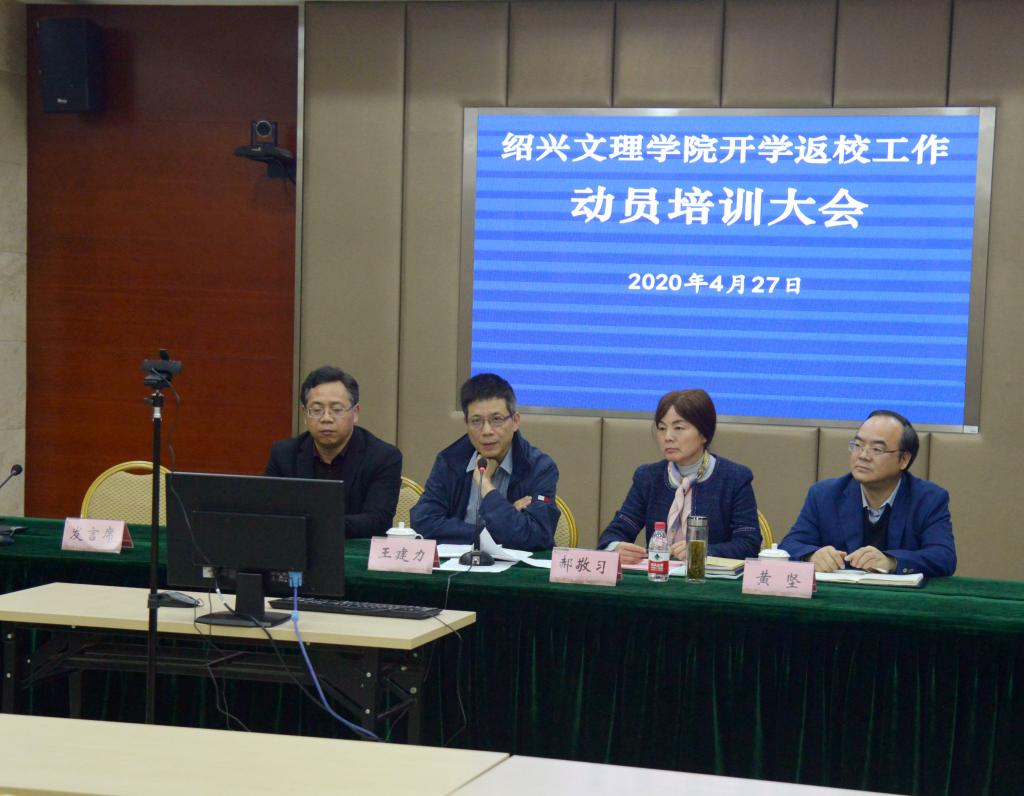 根据《浙江省教育厅新型冠状病毒肺炎疫情防控工作领导小组办公室关于做好高等学校2020年春季学期开学工作的通知》精神,经学校党委研究,并报属地政府同意,我校将于2020年5月5日至10日安排符合返校条件的学生,按照不同校区、不同类别、不同年级分批错峰返校。4月27日下午,我校召开开学返校工作动员大会暨返校复学疫情防控工作培训会,部署学校开学复课相关工作,会议以视频会议的形式召开。校长王建力,党委副书记郝敬习,副校长柳国庆、黄坚,全体中层干部、二级学院科级干部、辅导员和班主任参加会议。王建力作动员讲话,郝敬习主持会议。