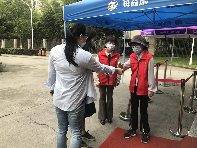 党员志愿者参与超市入口体温检测