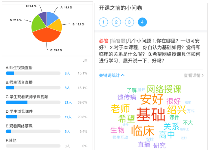 3.后续难点。在具体授课过程中,我发现手写板等设备在网课中非常必要,尤其是需要看图为主的医学类课程;如果学生能看到教师一边手绘细胞、组织、器官一边讲解,学习效果会更加好,我以为相关教研室可以提出采购申请;其次,这门课原本在线下课程中融入了情景模拟,以及团队形式的案例讨论等环节,为了保证学习成效,或许都要等疫情结束后再开展,也希望能与已经在线上开展类似教学环节的老师们多多交流和探讨。