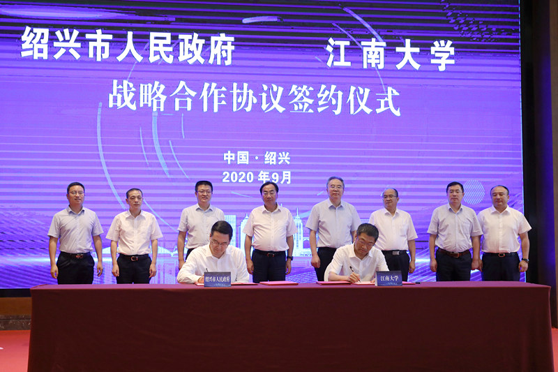 9月15日下午,绍兴市人民政府与江南大学新一轮全面战略合作协议仪式在我市举行,我校与江南大学签订合作协议。中国工程院院士、江南大学校长陈卫,市委书记马卫光致辞。市委副书记、市长盛阅春,副市长邵全卯,校长王建力,副校长寿永明等参加会议。