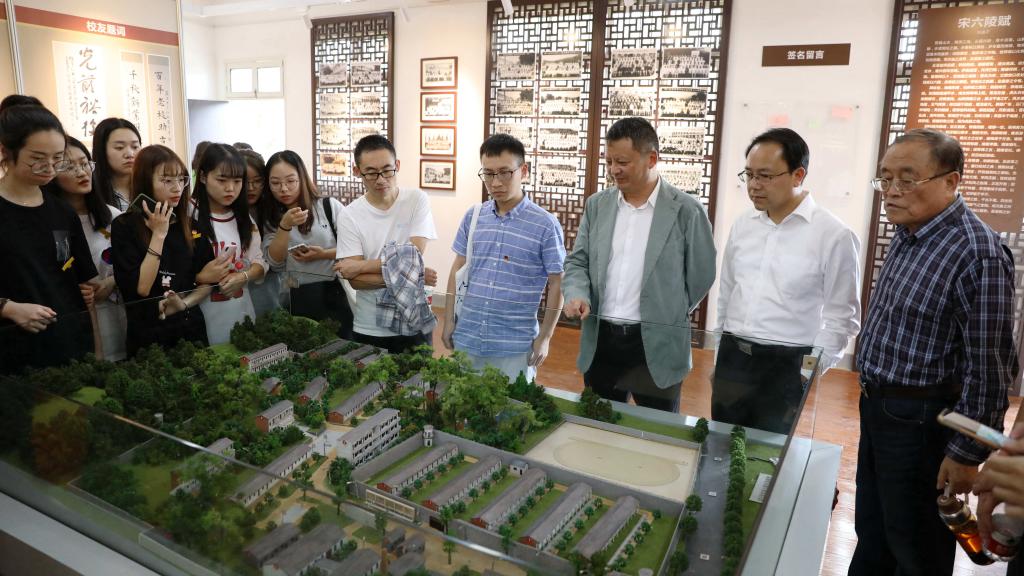 新生在讲解员的引导下参加了宋六陵校区校门、大礼堂、行政楼、教学楼、校史馆,虽然这里的楼房已经老旧,有的甚至坍塌,但在讲解员的讲解下,大家却依然能够感受到老一辈校友在这里学习生活的激情。