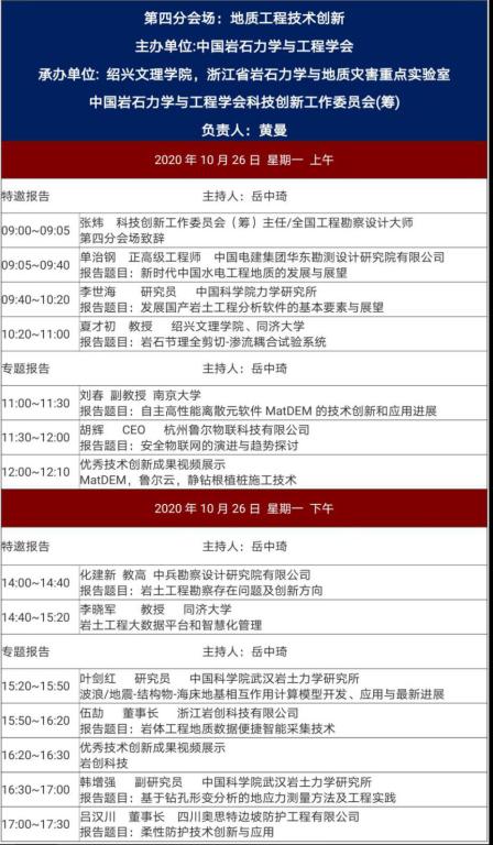 10月26日,China Rock 2020第十七次中国岩石力学与工程学术年会第四分会场的学术报告会议在线上平台成功召开。本次大会是在中国科学技术协会指导下、中国岩石力学与工程学会主办的具有“国际化、规模化、一体化”特点的顶级学术年会。会议主题是聚焦岩石工程瓶颈难题,促进科技经济深度融合。学会所属43个二级机构共组织23个分会场大会共有424场专题学术报告、5场技术培训以及3000平米的科技创新工业展览。
