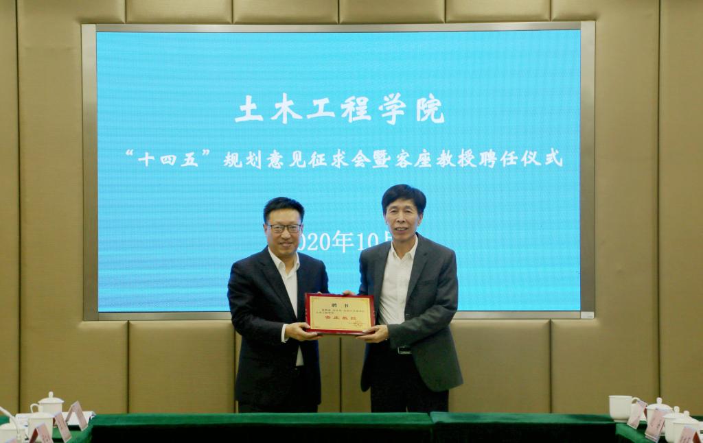 10月31日下午,土木工程学院“十四五”规划意见征求会暨客座教授聘任仪式在铁城科教馆会议室举行。校党委书记汪俊昌,副校长陈均土,土木工程学院伍法权教授,土木工程学院校友会会长、长业建设集团有限公司董事长虞学泽,土木工程学院第一批聘任的客座教授及校友代表,学校科学技术处、发展规划处、对外联络处、土木工程学院等单位负责人出席活动。