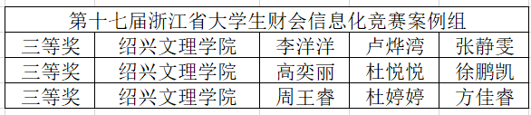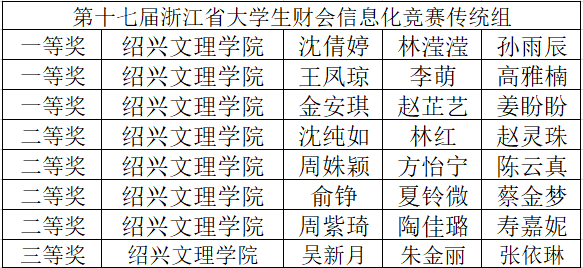 经过11月7日的预赛和11月14日的决赛,由浙江省教育厅主办的“天平杯”第十七届浙江省大学生财会信息化竞赛落下帷幕。本次竞赛赛制分为传统组和案例组,我校获传统组一等奖3组、二等奖4组、三等奖1组,案例组三等奖3组,学校荣获优秀组织奖。 第十七届浙江省大学生财会信息化竞赛自5月启动以来,历时半年,期间进行了校赛选拔和模拟赛练习,最后由商学院会计专业17级、18级和19级共48名学生所组成的11支传统赛队伍和5支案例赛队伍参加了省赛。