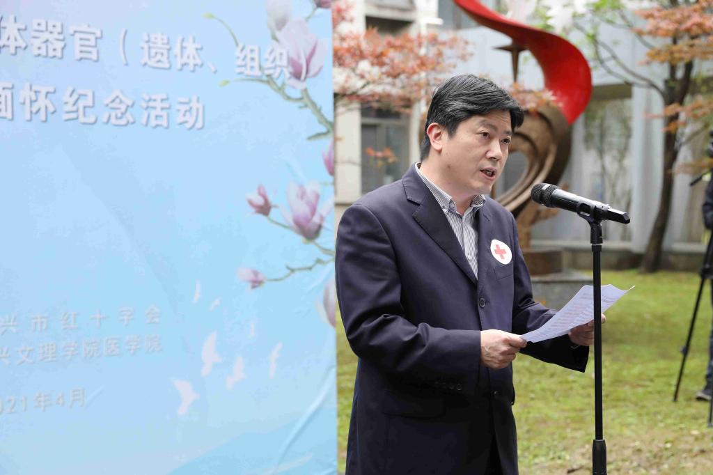 4月1日上午,绍兴市2021年人体器官(遗体、组织)捐献者缅怀纪念活动在我校举行,校副书记、红十字会会长张宏,市政府副秘书长周宝林,市红十字会党组书记、常务副会长华珺,校医学院、越城区红十字会等相关负责人参加活动。