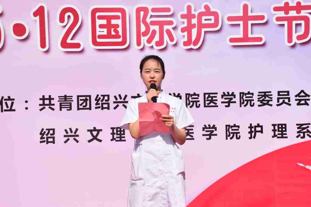 学生代表护理学181班汪玲炜表达了将继续学习和发扬南丁格尔精神,履行救死扶伤和防病治病的人道主义职责,把真诚之心无私奉献给每一位患者的决心,表示将努力做一名真正的白衣天使。