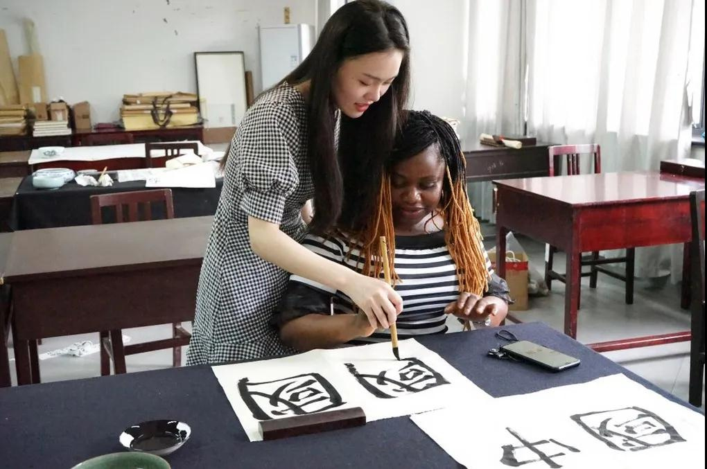 在和他们的聊天中,她发现外国朋友大多喜欢抽象图案,并且更喜欢动手实践。于是她结合他们这一喜好,将汉字与象形文字结合,例如山羊的羊字,把羊的图片、羊字的各种书体放在一起,并把羊和社会主义核心价值观联系起来。她会告诉他们:“In China, sheep are the symbol of beauty. Have horn but not aggressive , represent the ‘friendliness’ in the core values of Chinese socialism.”继而再让他们进行书法的练习,这一招特别管用,他们对中国文化的兴趣直线上升。