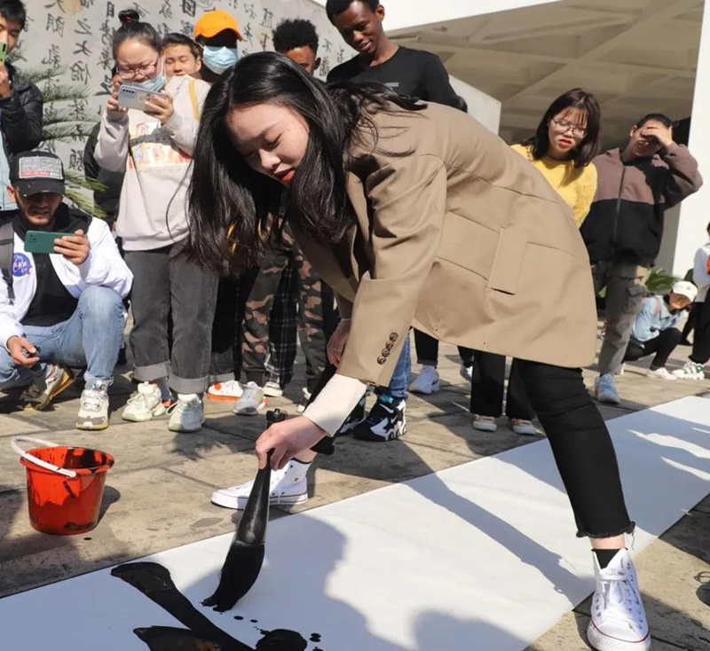 她喜欢和他们聊天,听他们问一些关于书法的天马行空的问题,比如他们用插着腰的茄子来记忆壶。“中国书法”对这些外国朋友的吸引力让她产生了强大的民族自豪感,她想让更多的外国人了解到中国书法及书法背后的文化内涵。