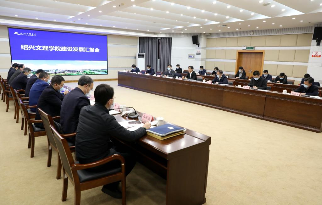 校党委书记汪俊昌介绍了学校的发展历史、基本情况和远期规划,以及学校更名设置、元培学院转设、人才队伍建设、校园改造扩建工程等重点工作推进情况。他表示,在历届市委市政府的关心和全市人民的支持下,学校以办一所“与绍兴经济社会高质量发展相适应的高水平应用型大学”为己任。近年来,学校办学体量不断增加,学科建设实现新的突破,师资队伍结构得到新的改善,人才培养质量稳步提高,服务地方发展更加有力。汪俊昌表示,学校的发展机遇与挑战并行,十四五期间学校将一手抓内涵发展,加快建设特色鲜明的高水平应用型大学;一手抓服务地方,为绍兴提供更多的人才支撑和智力服务。