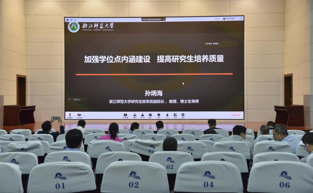 会议还特邀浙江师范大学研究生院常务副院长、博士生导师孙炳海教授以视频会议的形式作题为“加强学位点内涵建设,提高研究生培养质量”的专题报告。